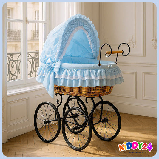 Korbkinderwagen für Puppen in Lila – Liebevoll Handgefertigt & Elegant