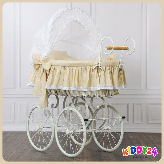 Korbkinderwagen für Puppen in Weiß – Liebevoll Handgefertigt & Elegant