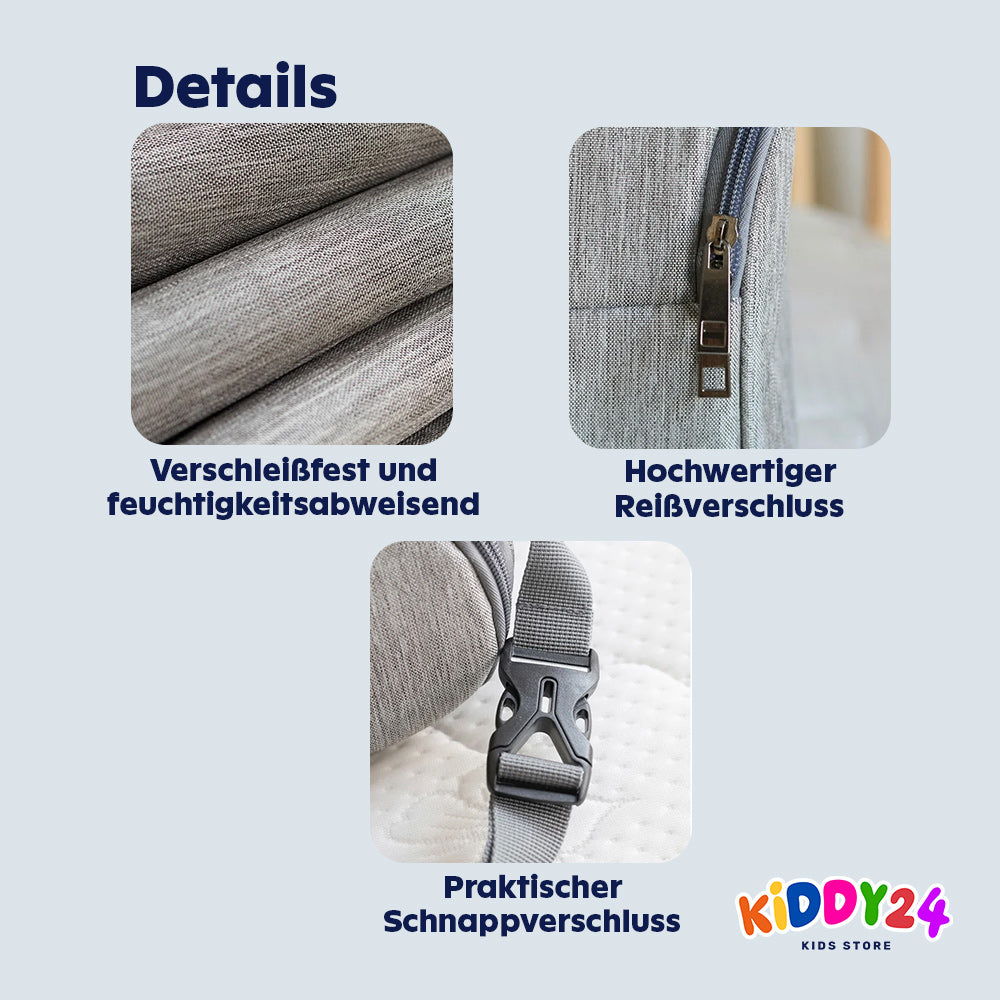 Die Alles-drin-Tasche ist mehr als nur eine einfache Tasche – sie ist dein zuverlässiger Begleiter im Alltag mit Baby. Ob als Wickeltasche, Kühltasche oder Babyflaschen-Tasche – sie bietet genügend Platz für Milchflaschen, Snacks und kleine Essentials, die unterwegs nicht fehlen dürfen.