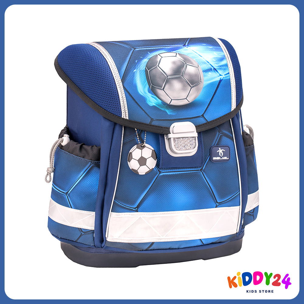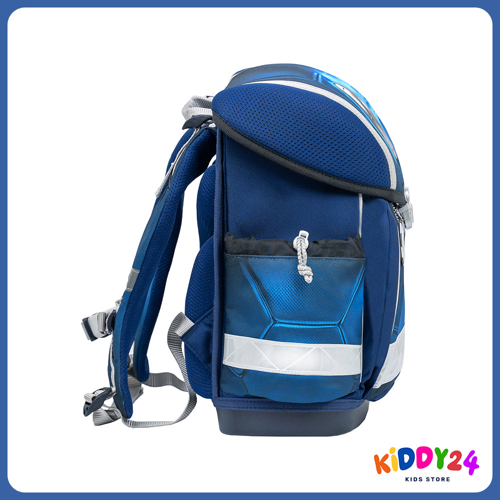 Das Set begeistert mit seinem sportlichen Football-Design: tiefblaue Farbtöne, sportliche Muster und ein glänzender silberner Fußball machen den Schulranzen zu einem echten Hingucker. Enthalten sind ein ergonomischer Schulranzen, ein Turnbeutel mit Kordelzug, ein rundes Federmäppchen (leer) sowie ein Schlamperetui. Ergänzt wird das Set durch einen praktischen Schlüsselanhänger und einen übersichtlichen Stundenplan.