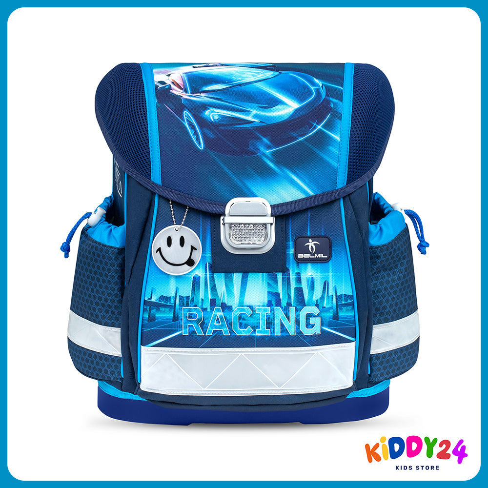 Im dynamischen „Racing Blue Neon“ -Look präsentiert sich das Set in intensiven Blautönen , leuchtenden Neon-Akzenten und sportlichen Racing-Grafiken – ein echter Hingucker für kleine Rennsport-Fans. Enthalten sind ein ergonomischer Schulranzen , ein Turnbeutel mit Kordelzug , ein rundes Federmäppchen (Leer) sowie ein Schlamperetui . Ergänzt wird das Set durch einen coolen Schlüsselanhänger und einen übersichtlichen Stundenplan.