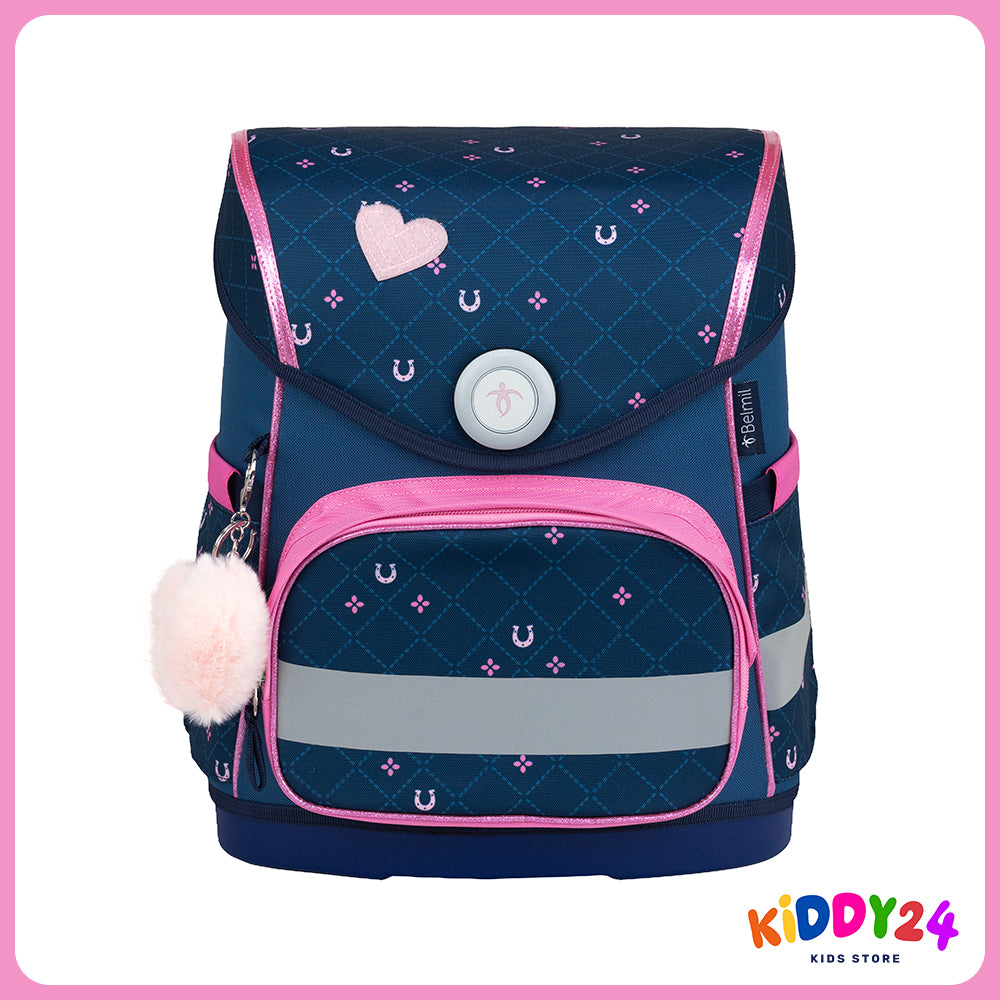 Der Schulranzen bietet drei Innenfächer im DIN-A4-Format, eine große Fronttasche für das Federmäppchen und zwei Seitentaschen für Trinkflaschen oder einen Regenschirm. Der magnetische Fidlock-Verschluss ermöglicht ein leichtes Öffnen und selbstständiges, sicheres Schließen. Reflektierende Elemente erhöhen die Sichtbarkeit im Straßenverkehr und sorgen für mehr Sicherheit.