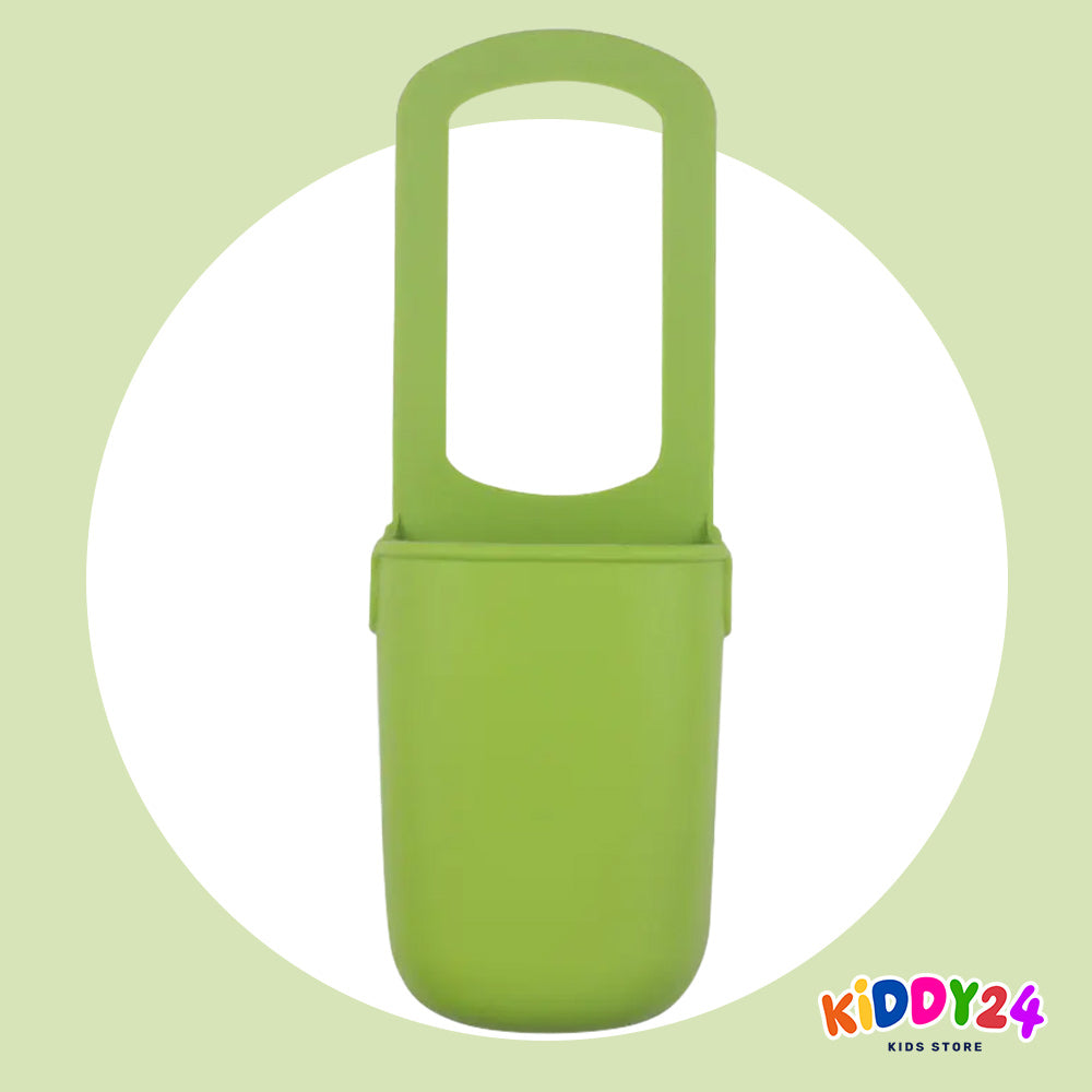 Der Halter bietet zuverlässigen Halt, selbst wenn es einmal hektischer wird. Dank seines rutschfesten Designs bleibt die Flasche fest an ihrem Platz – ohne Verrutschen oder Herausfallen. Durch die flexible Form lassen sich auch Flaschen mit Seitengriffen mühelos einsetzen. So hast du immer das gute Gefühl, dass dein Kind schnell an sein Getränk kommt.